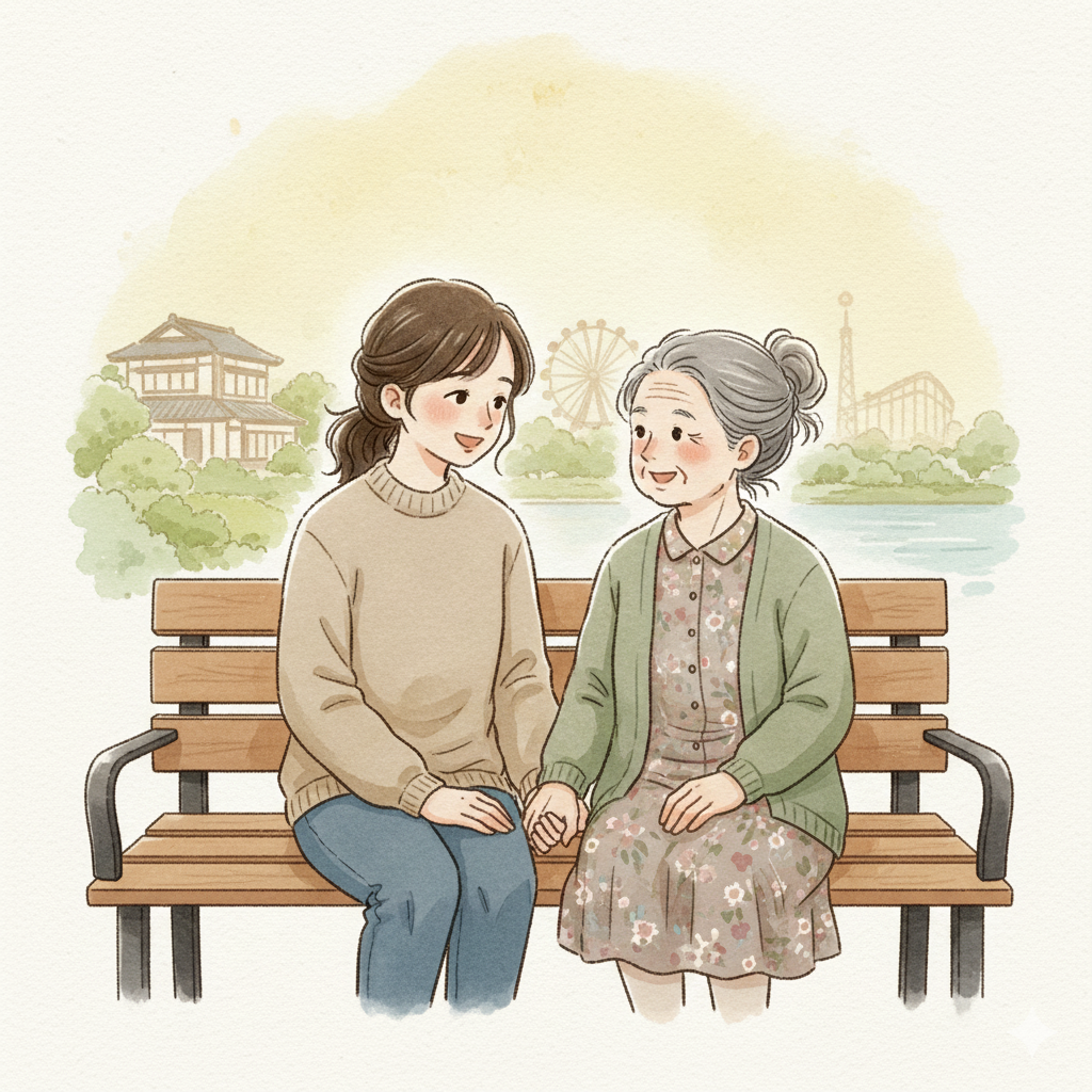 私がまだ小学生の頃でしたが、その後数年後に祖母が私の実家に遊びに来てくれた際には、一緒に遊園地に遊びに行ったりもできました。