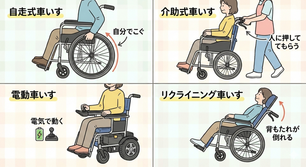 - 自走式:自分で車輪を漕いで移動するタイプ